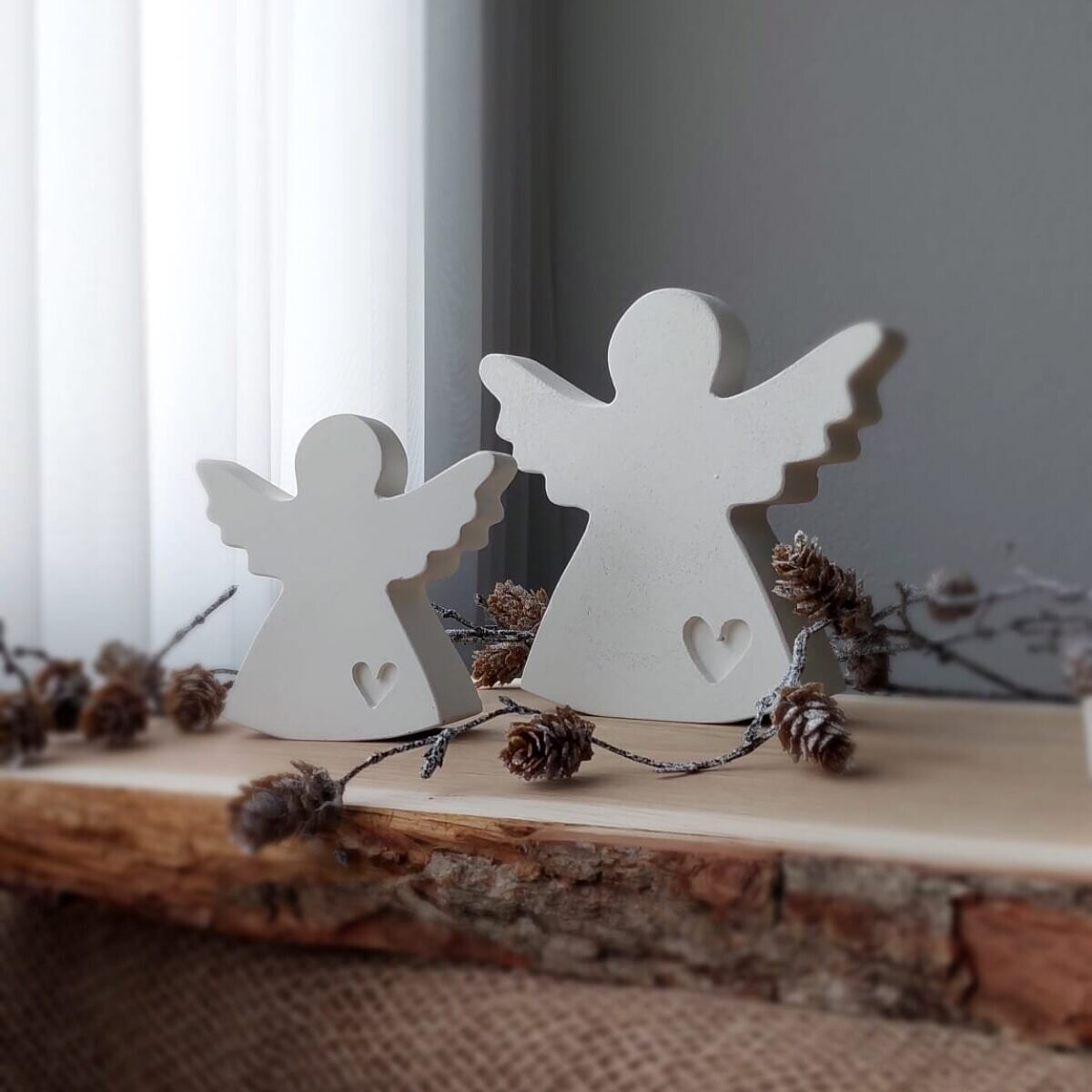 Die Engel stehen stabil auf flachen Oberflächen und können als Tischdeko, Fensterbankelement oder Teil eines saisonalen Arrangements eingesetzt werden. Dank der robusten Betonmischung eignen sie sich sowohl für den Innenbereich wie auch für überdachte Aussenbereiche.